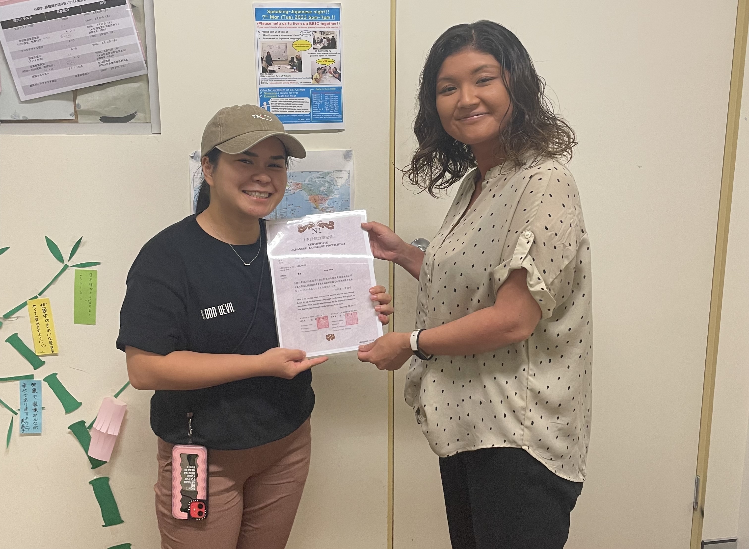 I originally chose BBIC because of the unbeatable location. Conveniently located in Chinatown, just a short walk away from either Town Hall of Central station, it's perfect for after-work. I continue studying at BBIC because of my teacher, Minako-sensei, who always goes to the extra effort for her students, and makes learning enjoyable. In fact, I enjoyed classes with Minako-sensei so much that after spending a year abroad (in Japan of course!), I returned to BBIC to study specifically with Minako-sensei. I also appreciate the kind staff at the school who always greet me with a smile and a friendly こんにちは before class. The vibe within the school is transportative and always makes me feel like I'm back in school in Tokyo.